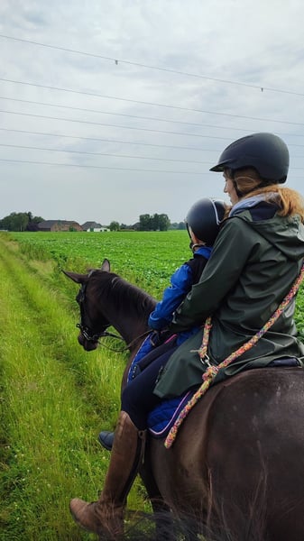Milly is een 19-jarige trouwe vriendin met een onschatbare persoonlijkheid. Ze woont bij ons als volwaardig familielid en is ook zeer gehecht aan onze kinderen. Het afscheid nemen van haar doen we dan ook met pijn in ons hart en na lange overweging, om privéredenen. Ze is uitstekend geschikt als gezelschapspaard, recreatiepaard of ook voor herintreders en beginners. Als Milly eenmaal vertrouwen heeft in haar ruiter, doet ze bijna alles. Ze beweegt alle gangen netjes in het terrein en op de piste – zowel solo als in een groep – en is bovendien absoluut schoeisel- en laadtraag. In de kudde is ze zeer sociaal en tot nu toe hebben we nog geen paard ontmoet waarmee ze niet goed overweg kon. We hebben Milly tijdens de coronaperiode overgenomen van een manege, waar ze enkele jaren trouw en braaf vele kinderen en volwassenen heeft geleerd paard te rijden. Vanwege een peesschade werd ze daar verkocht. Deze is bij ons volledig hersteld en ze rijdt sinds toen bij ons in recreatieve training. Oorspronkelijk was ze bedoeld als fokmerrie en is gekeurd met de staatsprijs, en heeft een gezond veulen geworpen. Ze wordt alleen in de allerbeste handen geplaatst en wordt niet direct meegenomen na eerste kennismaking. Een manegebedrijf is geen optie. Bij serieuze interesse is proefritten mogelijk. Plaats gaat voor prijs.