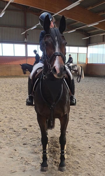 Amara is a beautiful mare with good rideability and plenty of jumping talent. She has attractive movement and demonstrates great enthusiasm for jumping. Amara is very honest, brave, and ambitious over fences, and also moves beautifully in dressage. She has been placed in A-level show jumping competitions with a young girl and has the potential for much more (M/S level). While she has plenty of energy, she is well-behaved and always gentle. Amara is very calm and straightforward in handling, even at competitions. She particularly enjoys going out in the field and is very comfortable in the outdoor environment. She also has experience in cross-country riding competitions. She is familiar with various playful activities that young girls often do, such as riding without a saddle into water, riding only on a halter, or participating in agility courses. Simply a horse that one can only wish for. 5 years old, Mecklenburg mare, 1.65 m Sire: Lenin (Light On) out of Sandro Star Good X-ray and clinical examination available. Video: https://youtu.be/PdkU6Xl70NY?si=nAtNYoQp9wi1LHhN More photos, videos, and glimpses into the daily life of our horses can be found on Instagram: [maresi_lange]. Feel free to take a look and get to know our four-legged friends a bit better in advance. Additional horses are available on my website MaresiLange.de or upon request. Please note: The horse’s description is based on subjective impressions and experiences and does not constitute a warranty or guarantee of qualities. Trial riding is at your own risk. The sale is carried out on behalf of the owner. For viewings and trial rides, we reserve the right to charge a fee of 30 euros, which will be deducted from the purchase price if the horse is bought.