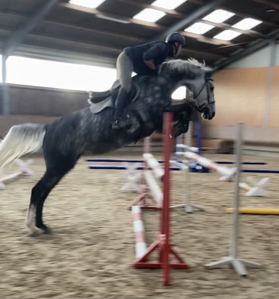 This elegant grey mare impresses with her cautious nature and excellent attitude towards show jumping. She has already been successfully presented in show jumping classes from A to M and has proven her speed as well. Corline has been in her owners' possession since she was three years old and was trained and presented by her breeder family until last year. After relocating her to our stable, we took the time for a rider change and placed a strong emphasis on her dressage training during this period. As a result, she was able to impress right away with two clear rounds in L and M* show jumping at her first start for our stable. She is now being prepared for her first M** competitions and can confidently aim for the higher classes this year! Originally given into training for her own use and with her owners' changing circumstances, we are now seeking a new partner for this wonderful mare in show jumping. If you would like to get to know Corline or need further information, please do not hesitate to contact us.