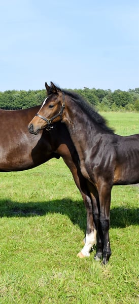 Dieses im April geborene, springbetonte Stutfohlen überzeugt durch Ausstrahlung, Qualität und hervorragendes Interieur. Sie ist lieb, zutraulich, neugierig und halfterführig – im täglichen Umgang sehr unkompliziert und bereits Tierarzt und Schmied vorgestellt. Auf der Fohlenschau setzte sie sich eindrucksvoll an die Spitze und wurde mit Traumnoten (9,5 Exterieur | 8,5 Typ | 9,0 Bewegung) zum Siegerfohlen gekürt. Väterlich stammt sie ab von Con Touch RS, welcher 2022 die Westfälische Hauptkörung als Sieger für sich entscheiden konnte. Als Sohn des Ausnahmevererbers Conthargos vereint er Modernität und Vermögen mit allerbestem Springblut. Über die Mutterseite bringt sie das wertvolle Blut des Cashmere (v. Cristallo I) mit, das für Rittigkeit, Vorsicht und Leistungsbereitschaft steht. Die Mutter selbst gewann die Redefiner Stutbucheintragung und trägt den Titel Staatsprämienstute. Abgerundet wird ihr Pedigree durch bewährte Leistungslinien wie Casall, Carthago und Cassini I, die in Sport und Zucht seit Jahrzehnten für Spitzenqualität stehen. Mit ihrem modernen, athletischen Körperbau, dem korrekten Fundament und den elastischen, kraftvollen Bewegungen bringt sie beste Voraussetzungen für eine Karriere im Spring- und Sportpferdebereich mit. Ein vielversprechendes Nachwuchstalent für ambitionierte Reiter.