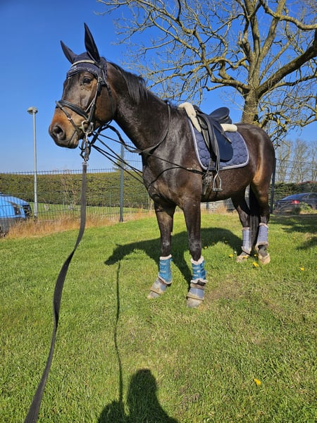 ich biete hier einen Mecklenburger Wallach geb. 2020 zum Kauf an. Abstammend von Landstreicher x K2 in schwarzbrauner Farbe und unerschrockenem Charakter. Seit dem Absetzen wächst er bei uns familiär zu Hause in einer Hengst-/Wallachherde auf. Er ist sehr menschenbezogen und ist an Kinder (Ball spielen, Trampolin hüpfend am Reitplatz, laute Geräusche usw.) sowie normale Alltagssituationen gewohnt sowie schmiedefromm, eindecken im Winter etc. Aus Zeitmangel wurde er bisher leider nur longiert. Er kennt jedoch Sattel und Reitergewicht. An der Longe läuft er sehr souverän in allen 3 Gangarten sowie über Trab-/Galoppstangen und kennt auch Freispringen. Wer ein unverbrauchtes unerschrockenes Jungpferd zur weiteren Ausbildung sucht - gerne per Whatsapp (0172/6437767) melden.