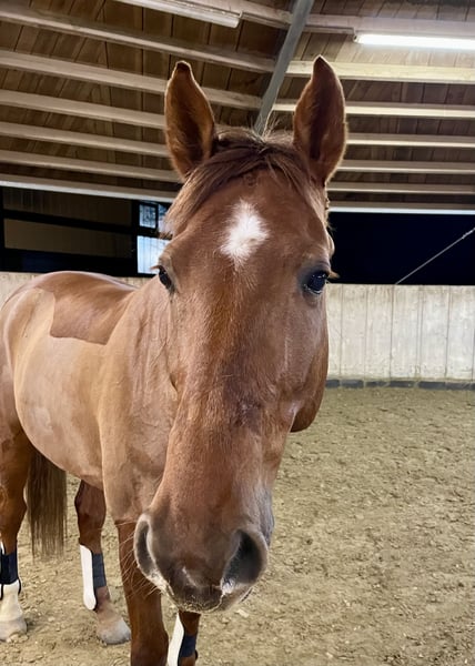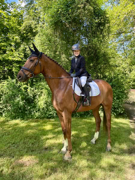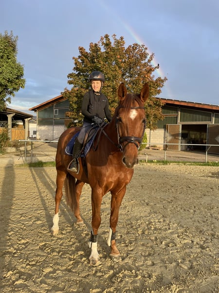 For sale: Mecklenburg Warmblood gelding – perfect for ambitious amateurs or young riders / suitable for transitioning riders. We are offering a beautiful Mecklenburg Warmblood gelding, born in 2017. This striking chestnut impresses with his friendly nature and easygoing temperament. With a height of 16.1 hh, he provides the ideal size for dedicated riders who value a versatile, well-trained horse. I purchased him as a foal, personally backed him, and trained him up to M-level jumping. Although he has not yet competed at M-level, he has been placed up to 115 cm in the current season. He has been consistently worked in dressage but has never been shown in competitions. He regularly goes out on hacks, remains unshaken, is easy to handle at all times, and is familiar with various challenges such as crossing a railway barrier, airplanes overhead, and riding under highway bridges. With a 10-year-old girl, he has been calmly ridden in dressage and jumping training. As a change of pace, he is worked on the ground once a week and could bring some festive cheer to any Christmas gathering ;-). He can lie down on command, perform a Spanish walk, and more. Charly is a very friendly and easygoing horse – he spent many years in a herd. He is healthy, regularly vaccinated, and had his teeth checked annually by the equine dentist. He is looking forward to a new challenge and a responsible owner who will nurture his talents. If you are interested or need more information, please feel free to contact me. Viewing and trial riding are possible by appointment.