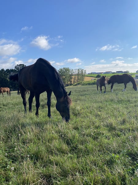 I am offering my 9-year-old horse into the best hands with a heavy heart. He has a suspensory ligament injury in the hind leg and is lame at the trot, so he is not suitable as a riding horse. At the walk, everything is possible. He is approximately 17.2 hh tall. Currently, he lives in an active stable with a gelding herd and gets along very well. He is also very people-oriented and absolutely uncomplicated in handling. He is brave, calm, and traffic-safe. Mentally, he enjoys mental stimulation and is familiar with equikinetics, groundwork, tensegrity training, and more, but he also loves relaxing days with his friends in the pasture. Otherwise, he is healthy, farrier- and veterinarian-friendly, and knows and likes dogs. He will only be placed in the very best hands; price is secondary. A loving home is a must, ideally as a companion horse or for calm ground work. I could also see him as a therapy horse. If you are seriously interested and have suitable space, I look forward to hearing from you.