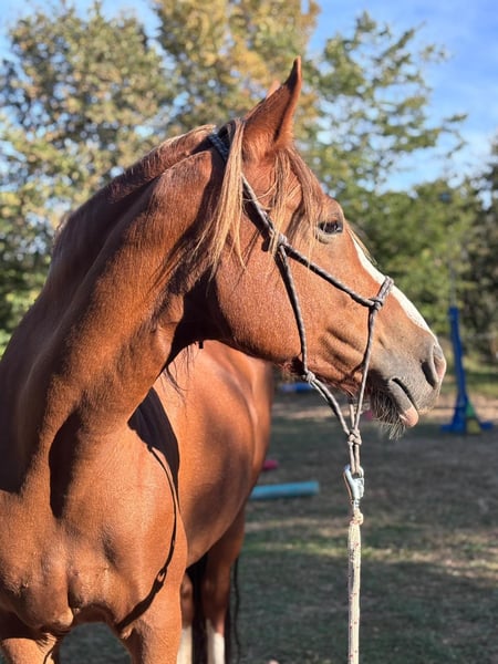 For sale: strong-built mare for hobby purposes. She spent a long time on pasture and was previously neglected, but since joining me, she has learned all the basics of flatwork. She works well in all gaits and surprisingly enjoys jumping. She is very quick to learn, always attentive, and shows great gratitude and affection. She is currently kept in a semi-wild (paddock) system with other horses. She has strong hooves and is kept barefoot (unshod). She receives regular veterinary check-ups, is fully vaccinated, dewormed, and had her teeth rasped 5 months ago. She is also vaccinated against West Nile Virus. She is a kind yet powerful animal who never gives up; she keeps going even when tired—her spirit is even stronger than her physical power. I cannot provide transport, but Horse Cargo can arrange delivery within Europe. Please contact me in written form.