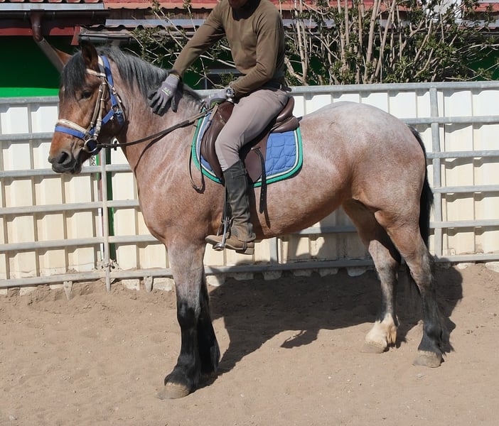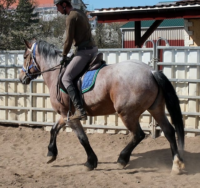 Schicke im modernen Typ stehende Kaltblutstute,fleißig bei der Arbeit und leichtrittig. Jagoda ist sehr gut in allen Gangarten auf dem Platz und in der Halle geritten. Weiterhin ist sie problemlos allein im Gelände und Straßenverkehr geritten. Geländereiten,Western,Schulbetrieb Sicher im Straßenverkehr und Gelände. 4 Jahre, 155cm Bei Interesse bitte anrufen, keine Mail! Für eventuell auftretende Fehler in der Beschreibung gilt keine Gewähr! Tel.: 0173-3843407 Da es sich um ein lebendes Tier handelt, sind dies subjektive Eindrücke des Anbieters und keine zugesicherten Eigenschaften des Tieres! Ständig schöne Fahr-u.Freizeitpferdesowie neue Kutschen verschiedener Modelle preiswert im Angebot. Anschrift Stall: 99628 Buttstädt, Oberwendenstraße 39