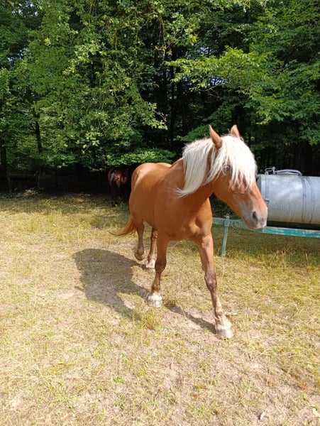 Vermutlich tragende Comtois-Stute. Sehr guter Charakter.
