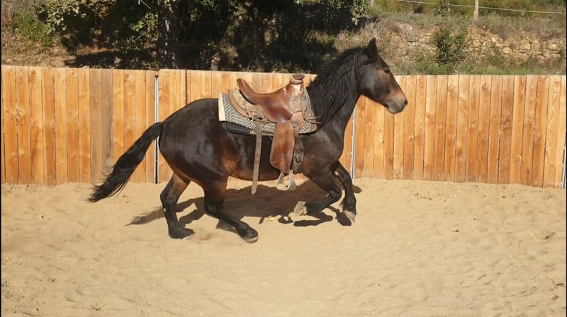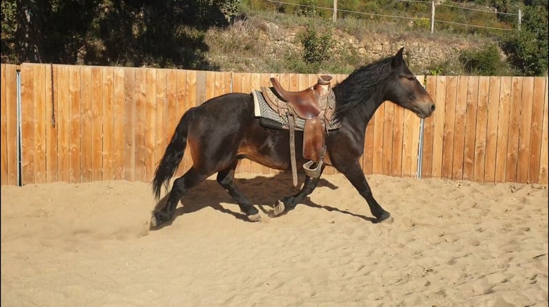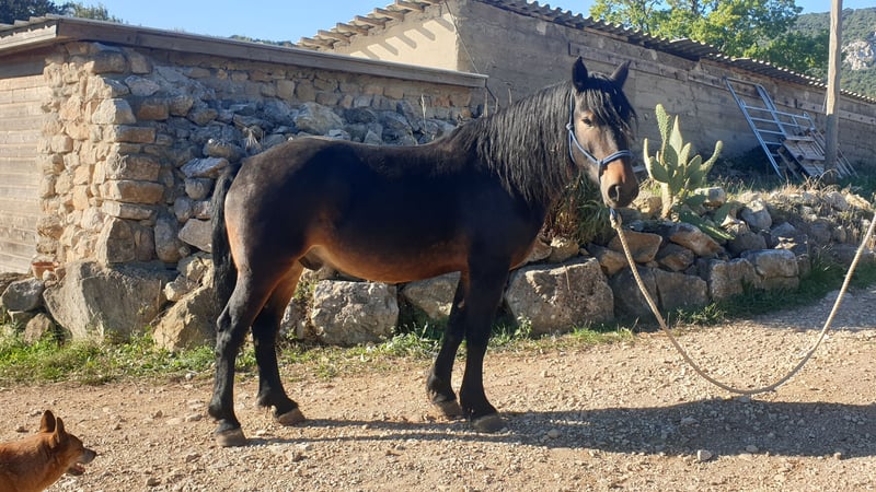 Joiah, een 6-jarige Castillonnais ruin, hengst, 1,55 m, vol liefde. Zeer mooi model. Gemakkelijk in de dagelijkse omgang, gaat goed samen met andere paarden. Dicht bij de mens. Bekapt op 3-jarige leeftijd en daarna opnieuw onder het zadel bij ons. Hij heeft de afgelopen 3 jaar van een leven in de kudde buiten genoten om zijn groei af te ronden. Hij is een goede leerling die zijn best doet. Nog groen, dus niet geschikt voor beginners. Hij heeft een ervaren ruiter nodig om verder in de juiste richting te blijven werken.