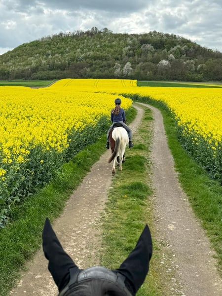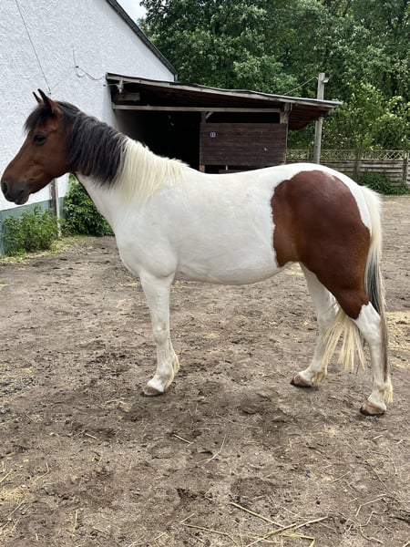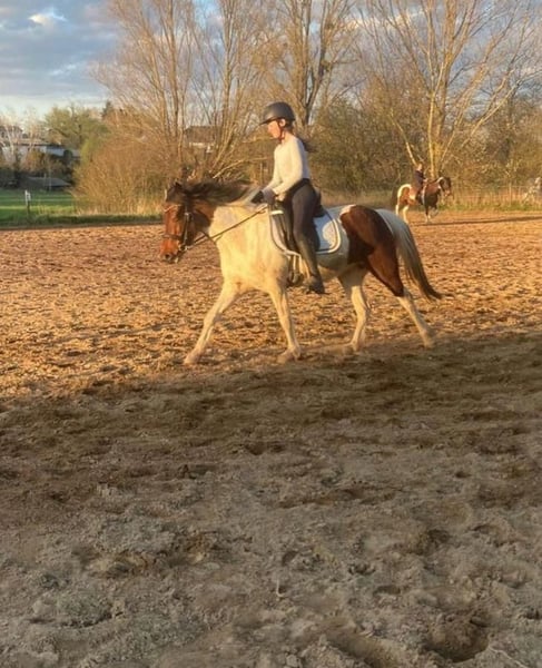 For sale is a beautiful, friendly pinto mare born in 2015. She stands approximately 12.5 hands high and is ideally suited for leisure riding. Whether for relaxed trail rides, walks, or further development in the riding arena – this mare is versatile and a wonderful companion. I initially purchased her for use in my small riding school. However, she quickly showed that she doesn’t handle insecure riders on the arena very well. With her riding partner, she is a dream pony and can do everything a horse girl’s heart desires. She goes out alone on trails, does groundwork and liberty work, goes for walks, bike rides, etc. When you understand her and respond to her, she is a lovely companion. Unfortunately, her riding partner has now become too large and heavy for her (she comfortably carries up to 60 kg). Therefore, I am now looking for the perfect forever home for her. This is not a distressed sale!! If the ideal home isn’t found, she will stay with me. However, I truly wish for her to be more than just a trail and groundwork horse. If you are interested or have further questions, I am happy to assist. I also have more photos and videos available upon request. I believe it’s best to meet her in person to see if the chemistry is right. I am open to visits after a short phone call. The sale price is negotiable!