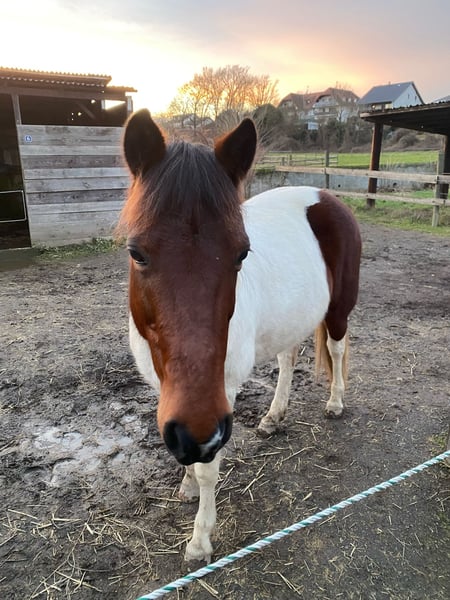 Zum Verkauf steht eine wunderschöne, freundliche Scheckstute, geboren im Jahr 2015. Sie hat ein Stockmaß von 125 cm und eignet sich ideal für den Freizeitbereich. Ob für gemütliche Ausritte, Spaziergänge oder die Weiterentwicklung auf dem Reitplatz – diese Stute ist vielseitig einsetzbar und ein toller Begleiter. Ich hatte sie für den Einsatz in meiner kleinen Reitschule gekauft. Sie zeigte jedoch schnell, dass sie mit unsicheren Reitern auf dem Platz nicht so gut zurecht kommt. Mit ihrer Reitbeteiligung ist sie aber ein Traumpony und sie kann mit ihr alles machen, was das Pferdemädchenherz begehrt. Sie geht mit ihr allein ins Gelände, macht Bodenarbeit und Zirzensik, geht spazieren, Fahrrad fahren, etc. Wenn man sie versteht und auf sie eingeht, ist sie ein wundervoller Begleiter. Ihre Reitbeteiligung wird jetzt allerdings leider zu groß und schwer für sie (60kg schafft sie aber sehr gut). Daher suche ich nun für sie das perfekte Für-immer-Zuhause. Sie ist kein Notverkauf!! Sollte sich für sie nicht das perfekte Zuhause finden, bleibt sie bei mir. Aber ich wünsche mir für sie eigentlich mehr als nur Mitläufer und Bodenarbeitspferd zu sein. Bei Interesse oder weiteren Fragen stehe ich gerne zur Verfügung. Ich habe auch noch mehr Bild und Videomaterial, was ich gerne auf Anfrage zur Verfügung stelle. Ich denke aber, dass es am meisten bringt, wenn man sie vor Ort kennenlernt und schaut, ob die Chemie stimmt. Daher bin ich jederzeit, nach einem kurzen Telefonat, für Besuchstermine offen. Der Verkaufspreis ist definitiv verhandelbar! Es gilt Platz vor Preis.