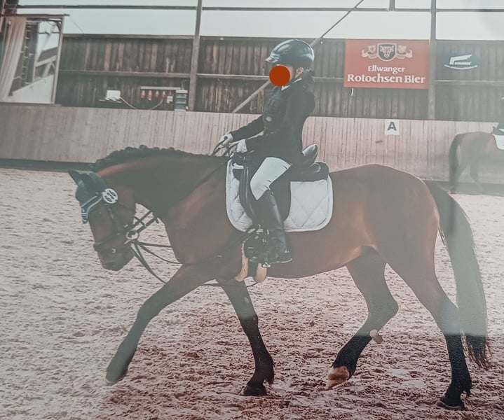 Pony mit Charakter und Dickkopf. Mia ist eine ungarische Reitpony-Stute. Wir waren mit Ihr in FZ-Klassen und WBO-Wettbewerben (Schritt-Trab-WB, Schritt-Trab-Galopp-WB) Bodenarbeit, Longe, Freispringen, Doppellonge, kleine Sprünge über Cavaletti macht sie alles. Dressurarbeit auf dem Platz mag sie nicht so gerne Sie klebt nicht, geht gerne alleine ins Gelände, das ist ihr Ding. Kennt Offenstall und Boxenhaltung, ist eher Einzelgänger und ranghoch. Wir wollten Sie für unsere kleine Ponyreitschule für Anfänger. Häufige Reiterwechsel sind aber nichts für sie. Ein oder zwei feste Bezugspersonen sind ideal. Sie ist kein Anfängerpferd und braucht einen schon gefestigten Reiter, der ihr Sicherheit gibt und sich durchsetzen kann.