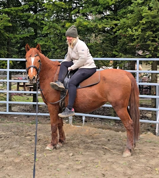 For sale is our sport pony mare Dakota, whom we have owned for the past two years. When we purchased her, she was pregnant – we will keep the foal, so Dakota is now looking for a new home. At her previous owner's place, she was mainly driven, while with us, she has mostly been ridden in the arena and on trails. She is well-behaved, eager, and motivated, even when ridden by young riders. In groundwork, she still requires some consistent training. During leading or lunging, she occasionally tries to pull away. Once she realizes that’s not possible, she quickly becomes obedient again. Health / Care: - Teeth treated - Regularly vaccinated - Regularly dewormed Stabling: - Used to an open stable (mare group) - Low in the hierarchy and very social With a bit more work and trust, Dakota can become a fantastic leisure horse and possibly a school horse. Please feel free to contact us if you're interested.