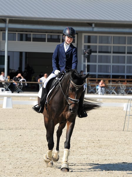 Yegua pony de 15 años, muy tranquila, experimentada y confiable, de color castaño oscuro, con una altura de 1,48 m. Rainbow Angel está muy bien entrenada y ha competido en concursos de doma hasta nivel M*. También muestra talento en salto, aunque en competición solo ha sido presentada en doma. Posee un movimiento muy bueno, conoce los cambios de pie y es fácil de manejar, por lo que los niños se llevan bien con ella. Acompañó a dos de nuestras nietas en clases de equitación y también fue presentada en concursos por las niñas, desde la categoría de iniciación hasta la prueba de jóvenes jinetes y la clase A. Además, en paseos y en campo, siempre se mostró de su mejor lado. La yegua está en forma y saludable, lista para su uso inmediato. Conoce el transporte en remolques, se carga fácilmente, incluso por niños, y es tranquila en la herrería. Se realizó una revisión técnica (TÜV) hace aproximadamente dos años, sin hallazgos especiales.