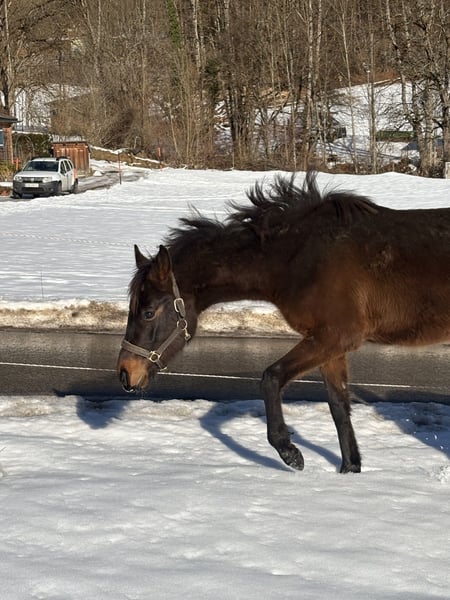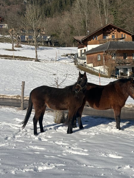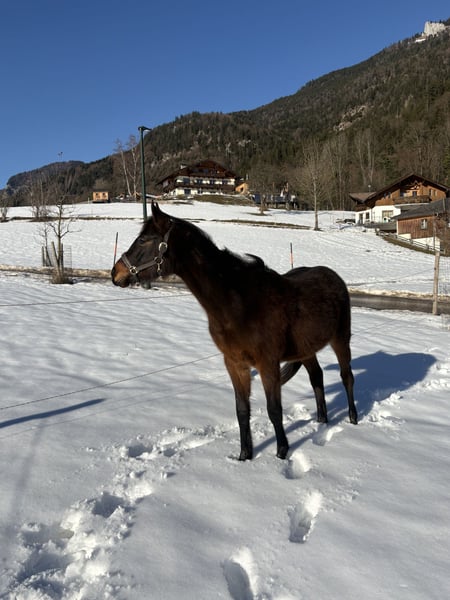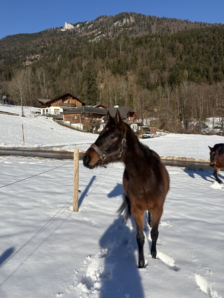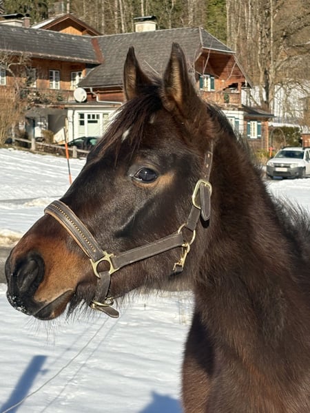Verkaufe bezaubernde Stute – Ein zukünftiges Dresswunder! Wir bieten eine charmante kleine Ponystute, geboren im Jahr 2024, zum Verkauf an. Das braune Kleinpferd ist ideal für den Dressursport, aber auch Mütterlicherseits ein keines Springtalent und begeistert durch ihre vielversprechende Abstammung und ihr freundliches Wesen. Sie ist bestens geeignet für Reiter, die ein talentiertes Nachwuchspferd suchen, um gemeinsam die Dressurwelt nach absolvierter fachkundiger Ausbildung zu erkunden. Unsere Chichi wächst seit ihrer Geburt im Offenstall auf und kennt bereits das Fohlen ABC. Im Umgang und bei langen ausgedehnten Spaziergängen ist sie stets artig. Sie kennt Kinder, Hunde , Traktor und ist total unerschrocken. Auch beim Verladen spaziert sie in den Hänger als wäre sie bereit auf‘s Turnier zu fahren. Beim Hufschmied und Tierarzt ist sie sehr brav. Die kleine Maus wird abgegeben da wir nach Wegfall der 2 ten Stute nur mehr eine reine Wallachherde haben. Bei Interesse freuen wir uns auf Ihre Kontaktaufnahme!