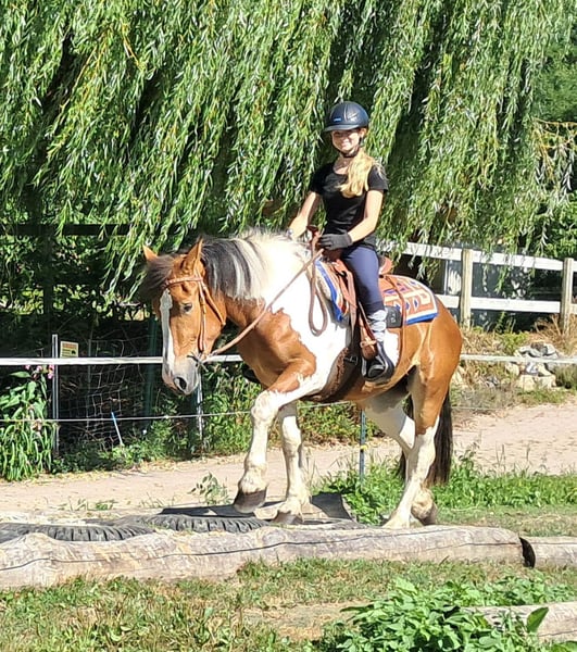 Kora, un poney à tomber amoureux ! Jolie jument au grand cœur, amicale, proche des humains, toujours désireuse et volontaire, belle apparence, facile à monter, très confortable à cheval, absolument sans problème en troupeau, il faut vraiment la rencontrer, 145 cm, 3 ans. Pour les randonnées, le terrain et l'équitation de loisir. L'anglais et le western sont tous deux possibles. Habituée à l'abri ouvert et à la vie en troupeau, une boxe ne pose également aucun problème. Passeport équin disponible. Tous nos chevaux connaissent le travail au sol, différents terrains, les voitures, les machines agricoles, ainsi que les vaches, ânes, moutons, cochons, chiens, chats et poules. Infos et prise de rendez-vous au 08536-2890292 (répondeur disponible) ou 0157-78378455 (pas de réseau mobile à la ferme). Merci de ne pas envoyer de messages privés, d'e-mails ou de demandes WhatsApp !! Dimanche jour de repos. Accessoires et transport possibles à bas prix. Chaque client se voit accorder un droit de retour contractuel de 6 semaines. Les prix sont fixes. Pas de demandes de paiement échelonné souhaitées. Celui qui vient avec une remorque et emporte le cheval reçoit une réduction de 100 €. Lors de l'achat, un acompte de 1000 € en espèces est exigé. Celui qui souhaite emmener le cheval immédiatement doit bien sûr payer la totalité. Nous faisons avec les clients une sortie à cheval avec deux chevaux de votre choix, afin que vous puissiez rencontrer votre cheval de rêve et vérifier s'il s'agit du bon cheval pour vous. Chaque rendez-vous coûte 35 €, que ce soit pour monter, essayer, préparer, se promener... chaque cavalier supplémentaire (ami, amie, sœur, entraîneur...) paie le même prix s'il monte, juste pour regarder nous coûte aussi du temps et donc 20 €. Le montant sera remboursé lors de l'achat d'un cheval le même jour. En raison de plusieurs incidents, nous vous demandons de fournir des informations véridiques sur le poids du cavalier. En cas de fausses déclarations, nous nous réservons le droit de décider sur place de ne pas faire un essai. Pour le bien de nos chevaux, nous ne souhaitons pas imposer plus de 120 kg à nos chevaux bien bâtis. Étant donné qu'il s'agit d'un animal vivant, ce ne sont que des impressions du soignant et non des caractéristiques garanties du cheval. D'autres chevaux/ponys dans mes autres annonces ou sur demande.