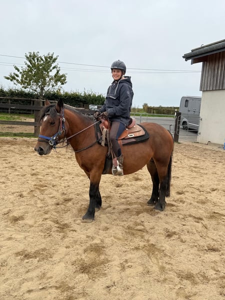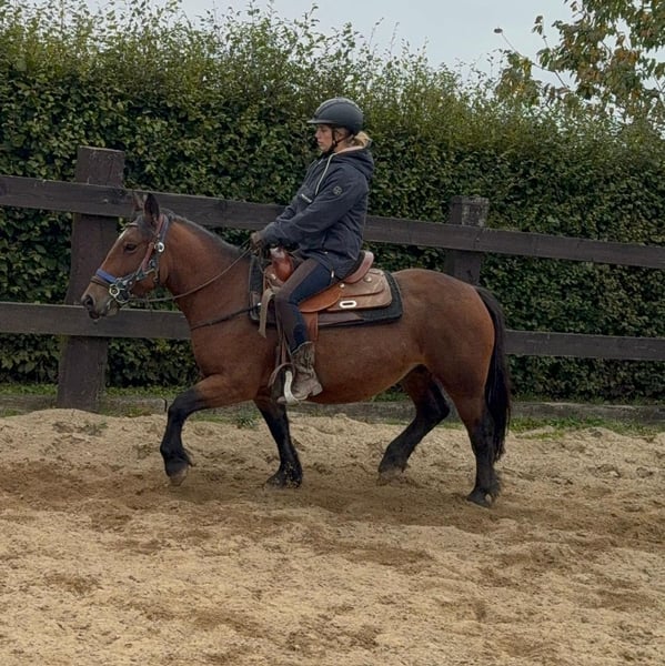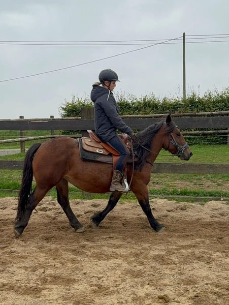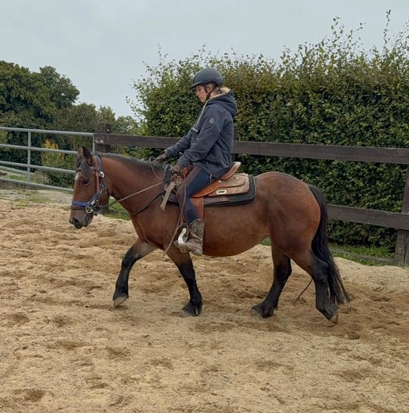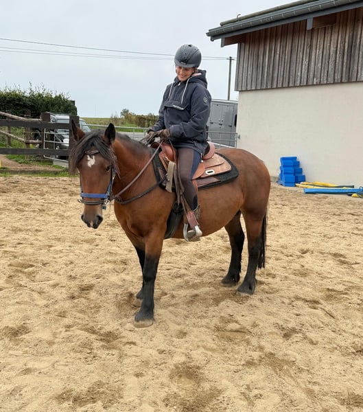 Zum Verkauf steht eine 4 Jahre alte, etwa 137cm große, sehr kräftige Ponystute. Sie sieht aus wie ein mini Kaltblüter und deckt sehr gut ab. Sie bewegt sich trotzdem relativ sportlich vorwärts und ist keine totale Schnarchnase. Trotzdem sehr brav und entspannt. Sie ist freizeitmäßig geritten und geht alle Gangarten brav mit Reiter. Sie wird aktuell noch regalmäßig weiter geritten. Im Umgang ist ebenfalls sehr brav und ruhig. Sie wäre bestimmt auch ein tolles Pferd für geführte Kinder Ritte oder ähnliches. Krankheiten oder Allergien sind nicht bekannt. Eine AKU darf gerne gemacht werden. Für das Probereiten, Vorreiten oder anderes Ausprobieren des Pferdes berechnen wir 35€. Beim Kauf wird dies gutgeschrieben. Gerne anrufen oder eine Nachricht senden 0157 36803742 Alle Angaben ohne Gewähr, Preisänderungen vorbehalten, Transport möglich, Onlinekauf möglich