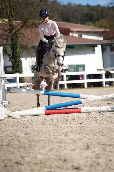 „Sissi“, tolles Nachwuchspony mit Potenzial. Super lernwillig und mit tollen Gängen ausgestattet. Am Sprung zeigt sie viel Potenzial und ist daher mit weiterer Ausbildung ein tolles Pony für Springprüfungen. Im Umgang etwas zickig, daher nur als Kinderpony geeignet, wenn Erwachsene mithelfen.