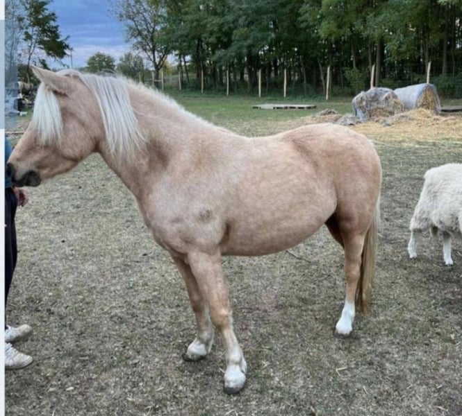 Zum Verkauf steht hier eine traumhaft schöne 5 jährige Palomino Pony Stute mit einem Stockmaß von 125 cm. Sie hat einen mega lieben Charakter und ist gesund, läuft barhuf, ganz unkompliziert im Umgang. Wurde hauptsächlich für Reitpädagogik und Ponyführen eingesetzt. Kennt auch Spaziergänge im Gelände und ist immer mega brav. Gibt alle 4 Hufe und steht still beim Putzen. Kann gerne jederzeit besichtigt werden. Einen Transport können wir auch gern kostengünstig organisieren. Weitere Informationen, Fotos und Videos gerne auf Anfrage direkt in WhatsApp.
