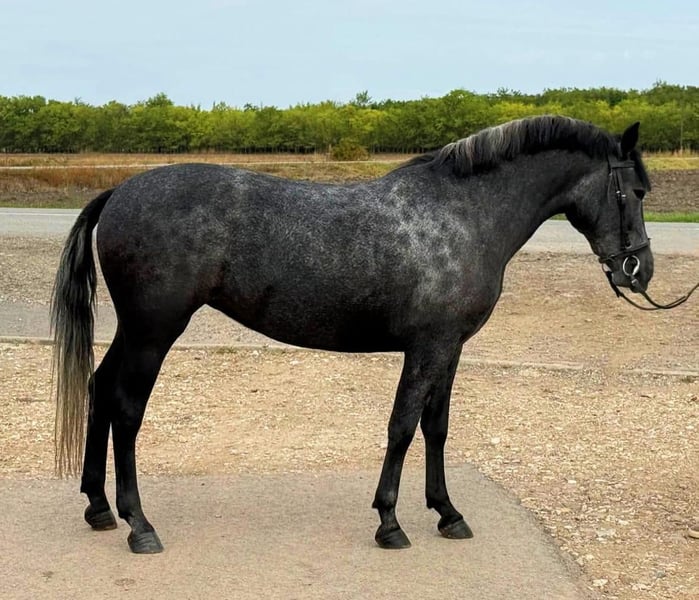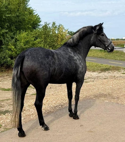 ✨🌅 Vermittungshilfe 🌅✨ 🌟 Díva – Exclusive Sport Pony Mare 🌟 🦄 Name: Díva 📅 Age: 5 years ♀️ Gender: Mare 📏 Height: 148 cm 🐎 Type: Sport Pony ✨ Díva is a beautiful, typy sport pony mare with excellent conformation and an elegant presence. Her harmonious build, fine top line, and graceful demeanor make her a real eye-catcher – both in training and at the competition arena. 💫 Character: Díva impresses with her balanced, friendly, and cooperative character. She is attentive, eager to learn, and always shows joy in her work. Sensitive to aids, rideable, and uncomplicated – ideal for youth or adults looking for a powerful and reliable sport pony. 🏅 Areas of Use: ✔️ Movements with a lot of rhythm, momentum, and expression ✔️ Very good rideability and balance ✔️ Promising for dressage, jumping, or eventing in pony sports 🌿 Health & Care: Of course, regularly vaccinated, dewormed, and well-behaved for the farrier. Díva is in excellent health, clear-headed, and has been gently trained. 🔥 Special Features: With her height of 148 cm, she perfectly fits the sport pony size and combines the elegance of a large horse with the manageability of a pony. Díva is an ideal partner for ambitious pony sports, but also a great companion in leisure activities. We are happy to assist with transport 😁 Videos available at: +4917640177894