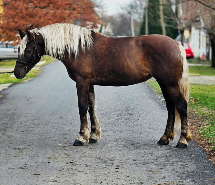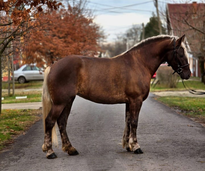 Zsuzsi – 155 cm wzrostu, spokojna klacz, wszechstronnie nadająca się do jazdy i ujeżdżania Zsuzsi to pełna miłości, przywiązana do człowieka koń, która wyróżnia się cierpliwością i równowagą. Ma harmonijną budowę ciała i poprawny chód, co zapewnia jeźdźcowi poczucie bezpieczeństwa, dlatego doskonale sprawdza się jako koń rekreacyjny i rodzinny. Obszary zastosowania: Podczas jazdy jest spokojna, dobrze kierowana i utrzymuje równomierne tempo we wszystkich trzech chodach podstawowych. Zarówno na placu, jak i w terenie, jest niezawodna i odważna, co czyni ją odpowiednią także dla dzieci. Podczas jazdy w zaprzęgu jest spokojna i pewna siebie, nie da się jej zdenerwować ruchem ulicznym ani innymi bodźcami zewnętrznymi. Przy lekkim powozie pracuje niezawodnie i jest idealnym partnerem na rodzinne wyjazdy. Wiek: Zsuzsi ma 4,5 roku i w marcu skończy 5 lat. Pomimo młodego wieku jest inteligentna, chętna do nauki i pracuje spokojnie. Codzienna obsługa: Łatwa w obsłudze i cierpliwa. Spokojnie stoi podczas pielęgnacji, chętnie oddaje kopyta i bez problemu prowadzi się na uwięzi oraz przywiązuje. Charakter: Przyjazna, nie dominująca i towarzyska wobec innych koni. W nowych sytuacjach rozważna i współpracująca z ludźmi. Stan zdrowia: Regularnie pielęgnowana, zdrowa, z paszportem koni, aktualnymi szczepieniami i świeżymi badaniami krwi. Zsuzsi to pełna miłości i wszechstronna klacz, która jest pewnym wyborem dla dzieci, rodzin oraz wszystkich poszukujących spokojnego i niezawodnego konia. +48 176 401 77 89