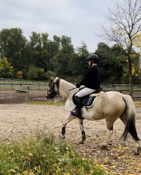 Kucykowa klacz, 5-letnia, szuka kochającego domu. Imię: Betty Kolor: Łaciatka beżowo-biała Wzrost: około 147 cm Wiek: 5 lat Płeć: klacz Urocza Betty przyciąga wzrok i zachwyca swoim łagodnym, pewnym siebie charakterem. Charakter: * Kochana, niezawodna i odważna * Na początku nieco nieśmiała i potrzebuje czasu, aby zaufać Stopniowo buduje silną więź ze swoją opiekunką Szczególne cechy: * Bezproblemowa w obsłudze na boso i podczas czyszczenia kopyt * Chętnie współpracuje podczas załadunku i jest posłuszna w codziennym kontakcie * Idealna dla jeźdźców rekreacyjnych szukających wrażliwej i wiernej partnerki Dla Betty marzę o kochającym domu, gdzie ktoś doceni jej łagodny charakter, a jednocześnie będzie ją dalej rozwijał. Dostępne są filmy z jazdy oraz więcej zdjęć. W razie zainteresowania lub pytań chętnie służę pomocą.