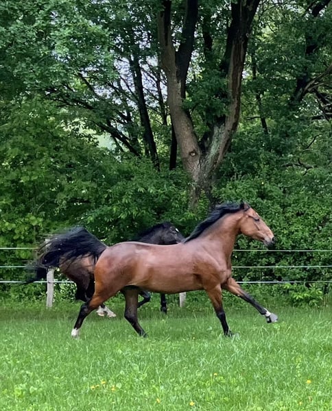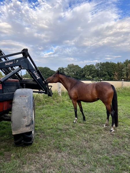 Natasja is a pony mare of small stature, equipped with three very good basic gaits. She is backed and was in training for further education about 1.5 to 2 years ago. Additionally, she has been professionally lunged, which she greatly enjoyed. She especially loves going out on rides in the countryside. Due to health reasons, I am no longer able to give her the long-term care she deserves, and she is increasingly underchallenged. It is with a heavy heart that I have decided to find her a new home. For this reason, she has been with us for approximately 1.5 years. Consequently, a trial ride or test drive is unfortunately not possible at the moment. Since she is quite dominant and strong-willed, she is definitely not suitable for beginners or children. She is kept with a mixed herd in an open stable environment but is also accustomed to being stabled. Her pedigree is unknown. She has been regularly vaccinated and has been to the blacksmith. She is familiar with front and hind shoes, and hoof boots are no problem. Currently, she is unshod. She has seen the equine dentist annually and has been regularly treated by an osteopath. She has been professionally fitted with a saddle. A nearly new, custom-fitted Seabis saddle and other equipment are available for purchase. Please feel free to contact me with any further questions.
