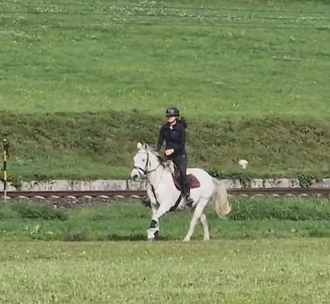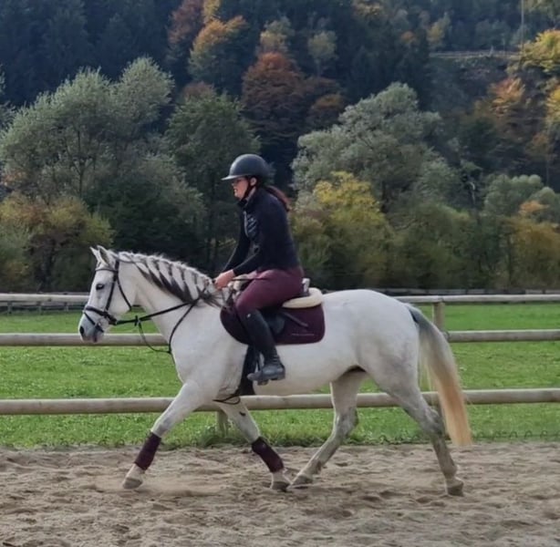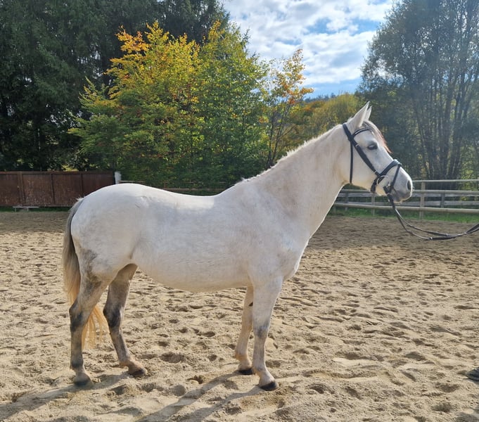 Unsere wunderschöne 8jährige Ponystute Gabi ist ein echtes Herzenspony – zuverlässig, gelassen und mit einem Traumcharakter ausgestattet. Sie ist das perfekte Pony für Kinder, Anfänger oder schwächere Reiter, aber auch aufgrund ihres ruhigen Wesens und ihrer Größe (145 cm Stockmaß) hervorragend für den Therapieeinsatz geeignet. Mit ihrem kompakten, stabilen Körperbau deckt sie auch größere Reiter problemlos ab, sodass sie für Kinder, Jugendliche und auch Erwachsene, die lieber ein Pony reiten möchten, ideal ist. Gabi läuft brav in allen drei Grundgangarten auf dem Platz und zeigt sich dabei stets kooperativ und angenehm zu reiten. Sie ist eher vom gemütlichen Typ, stets freundlich und unerschrocken. Auch an der Longe ist sie sehr brav – selbst mit kleinen Kindern. Im Gelände ist Gabi ein absoluter Schatz: nervenstark, unerschrocken und zuverlässig, egal ob in der Gruppe oder alleine. Mit ihrem Prinzessinnen-Look und ihrem liebevollen Wesen ist sie ein echtes Traumpony für die ganze Familie. 🩷 Gabi ist gesund, hat keine Unarten und ist im Umgang ein absoluter Traum – vom Putzen bis zum Reiten einfach unkompliziert. Ein komplettes Zubehörset kann auf Wunsch gegen Aufpreis mit erworben werden. Ein Besichtigungstermin kann gerne jederzeit nach Absprache stattfinden und ein Transport kann gerne organisiert werden!