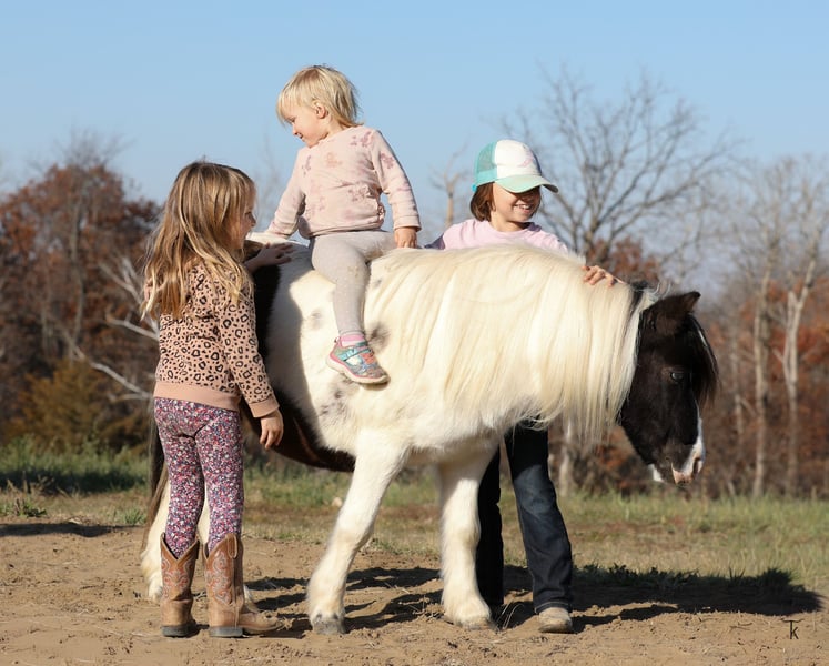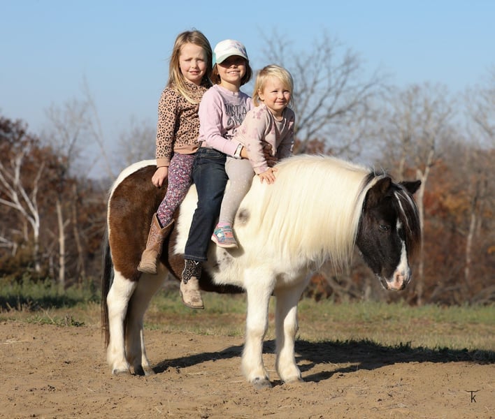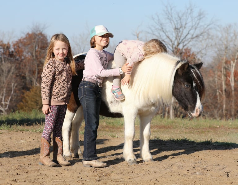 🎁 𝐈𝐍 𝐓𝐈𝐌𝐄 𝐅𝐎𝐑 𝑪𝒉𝒓𝒊𝒔𝒕𝒎𝒂𝒔 🎁 Happening now thru TUESDAY | DECEMBER 9th - Available EXCLUSIVELY on Ponybid's website! For more details and to register visit: www.Ponybid.com CONSIGNOR CONTACT: Tietjen Performance Horses 563-212-4686 LOCATION: Bellevue, IA BREED: Paint Pony REGISTERED: No REGISTERED NAME: Tonto COLOR: Black and White HEIGHT: 37 1/2 in AGE: 10 GENDER: Gelding Tonto is a stunning 37 ½ inch, 10-year-old, black and white paint pony gelding. Tonto has been part of our family for the past 3 ½ years and he is truly one of a kind! He is as sweet and kind as he is cute. He may be small, but he’s got a big heart and an even bigger personality. Tonto is extremely patient, whether our girls are brushing, braiding and loving on him, he’s being ridden in the arena or down the trail, he is steady and trustworthy with his most precious cargo. Tonto has done a little bit of everything. From trail riding to working cattle-Tonto goes wherever you point him, through ditches, over deadfall and through water. He will lead or follow, willingly packing along his little passengers. Tonto has been used to push cattle out of holding pens and into the arena. He has also been used as a turnback horse when we are training our cutting horses. Tonto has even chased and roped goats. Tonto has been hauled and shown to our local fun shows. He does lead line as well as walk-trot classes, ranch riding and ranch trail. No matter what the job, he always gives his very best and takes care of his rider every step of the way. Tonto is the kind of pony you can trust with anyone. He is calm, patient and gentle. He’s happy to go for a quiet ride, take part in a day of ranch work or go show. He’s always eager to please and loves being part of whatever is going on. Tonto does fine in a stall or out in the pasture with other horses and is the first one to meet you at the gate. Tonto loads in a stock or slant trailer, ties, clips, bathes and stands for the farrier. He is 100% sound. If you’re looking for a good-minded, trustworthy partner to take care of your loved ones, Tonto will definitely steal your heart and fit into your family. Just like he did ours. If you have any questions or would like to meet Tonto, please give us a call. We would love to visit with you about him and set up a time for you to come meet him.