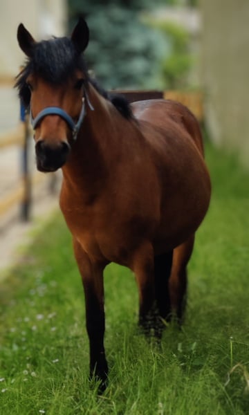 Er ist angeritten, gehfreudig. Kleiner Sprünge absolviert er mit großem Spaß.