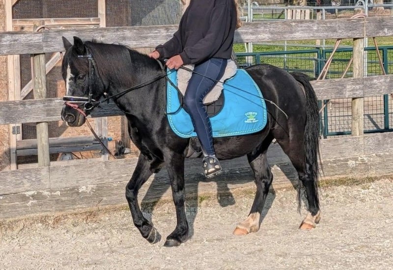 Gacomo is a friendly, small gelding who always wants to do everything correctly. He hasn't been ridden for a while but has been quietly working under saddle again for a few months. Currently, he is walking and trotting; cantering is just being introduced. Gacomo is a sensitive pony that needs some confidence and handling experience. He has lovely gaits and responds easily to the reins. He has no bad habits. Gacomo is completely healthy.