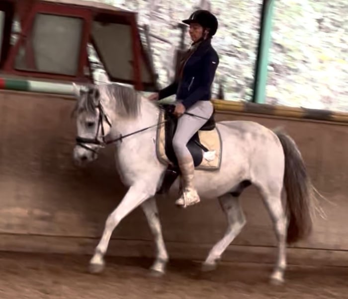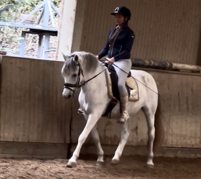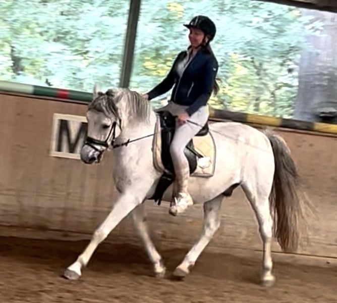 Dieser bildschöne Apfelschimmelwallach überzeugt durch sein liebes Wesen und gute Rittigkeit. Noch im Ponymass brimgt er genügend Körper mit um auch Erwachsene gut zu tragen. Er ist ausnehmend weich zu sitzen und ein ruhiger Charakter. Er geht Barhuf und ist auch verladefromm . Er steht in Wien im Prater und kann gerne jederzeit besichtigt werden.