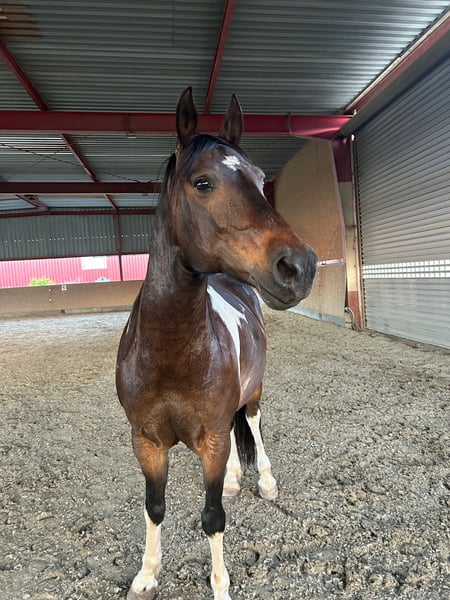 Te koop staat mijn ponyhengst "Schnuffel", geboren in september 2012, met een stokmaat van ongeveer 148 cm. Schnuffel is een eerlijk, leergierig paard met een sterk maar evenwichtig karakter. Hij is de ideale vrijetijdspartner voor jong en oud. In de omgang is Schnuffel braaf en makkelijk, maar hij heeft wel een stevige, leidende hand nodig, omdat hij geen puur beginnerspaard is. Hij is zeer mensgericht en zoekt altijd nabijheid bij zijn hartsmens. Daarnaast kent hij het poetsen, hoefsmid, laden en dierenarts. Schnuffel is geschikt voor recreatief rijden / ambitieuze ruiters en een ervaren familie. Hij is bij mij altijd gezond geweest en is regelmatig ontwormd. Momenteel staat hij in een buitenstal in een gemengde kudde. Boxstalling kent hij echter ook. PRIJS VÓÓR PRIJS – dit is geen noodgeval, Schnuffel wordt alleen aan de beste handen overgedragen. Bij serieuze interesse en voor vragen hoor ik graag van u.