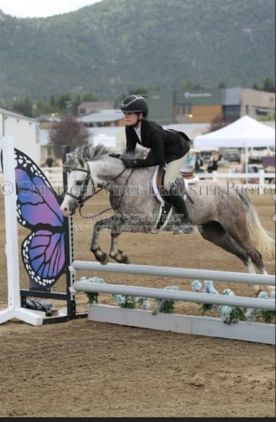 "AVAILABLE ON ONLINE HORSE AUCTION AT www DOT PlatinumEquineAuction DOT com BIDDING OPEN NOW thru SUNDAY | APRIL 19TH! *Final price will be determined on auction site* CONSIGNOR CONTACT INFO: Thea Park 970-632-3644 LOCATION: Fort Collins, CO ★★ SHOTGLASS BLUESTONE ★★ “Romeo” | 2021 Registered Welsh Pony Gelding | 12.2 Hands | Fancy • Fun • Kid-Approved Romeo is the definition of a dream pony. This 2021 registered Welsh gelding stands 12.2 hands tall and is as adorable as they come, with a perfect button nose, beautiful face, striking eye, and correct conformation to match. He’s the kind of pony that captures hearts the moment he walks out of the stall. Romeo is first to meet you at the gate and absolutely loves attention. With his goofy personality and sweet nature, he quickly becomes a favorite wherever he goes. He bonds easily with his people and has the kind of temperament that makes him a joy to have in the barn. Under saddle, Romeo is well-started and confidently progressing. He completed 90 days of jump training last summer and has been ridden and shown by lesson riders. He has a solid walk, trot, canter, and stop, a natural lead change, and transitions easily — cantering off a kiss and stopping off voice cues. He’s responsive, balanced, and incredibly fun to ride. He is reliable enough that my 2 year old daughter with very little riding experience can ride him around all by herself. Romeo has been shown at Estes Park and Copper Penny, hauling in, stepping off the trailer, and riding exactly the same as he does at home. His consistency and level-headed nature make him stand out in new environments. He also absolutely loves the trail. Romeo has been ridden extensively outside, confidently navigating dogs, bikes, running teams, strollers, traffic, and even busy downtown settings at night with music and crowds. He crosses water, bridges, tunnels, and will ride along the road without hesitation. Beyond riding, Romeo has a strong groundwork foundation and has been introduced to liberty work. He’s learning tricks like the step-up, bow, and lay down, and enjoys engaging with his handler. He’s also been ridden bareback and with a neck rope, has a finished neck rein, and moves nicely off leg cues. Romeo combines talent, brains, heart, and personality into one compact, eye-catching package. He has a wonderful foundation, a big try, and the kind of disposition that makes him truly special. If you’re looking for a fancy, safe, and versatile pony with show experience and real-world miles, Romeo is ready to be someone’s absolute favorite. Watch his extremely detailed video and come meet this standout little gelding in person — he’s every bit as cool as he sounds. For more information, contact Thea at 970-632-3644.