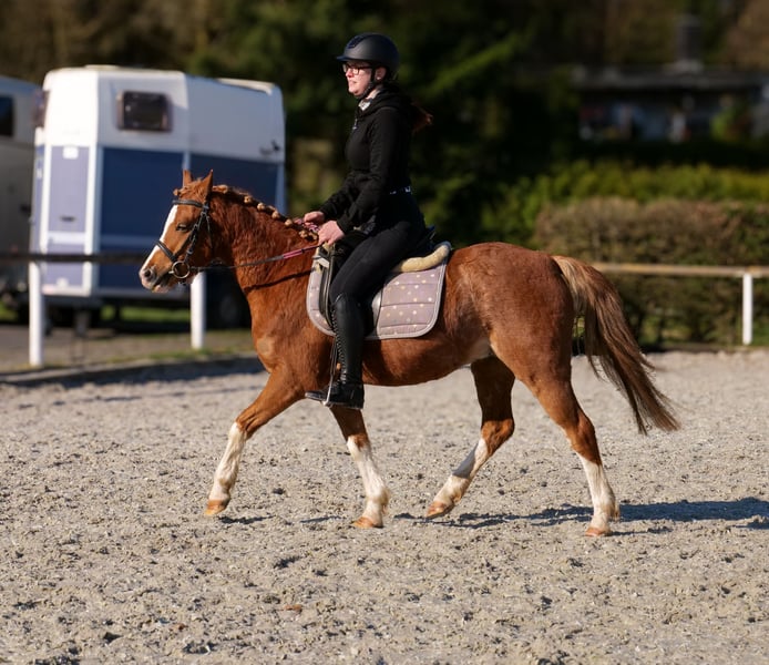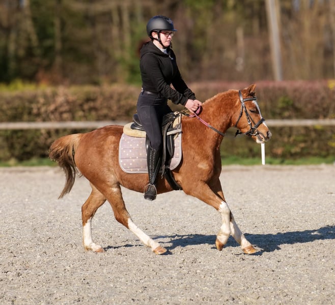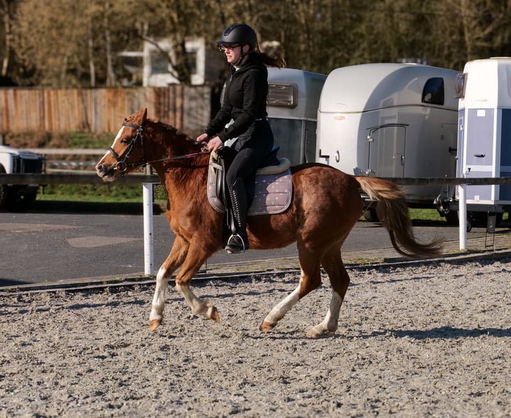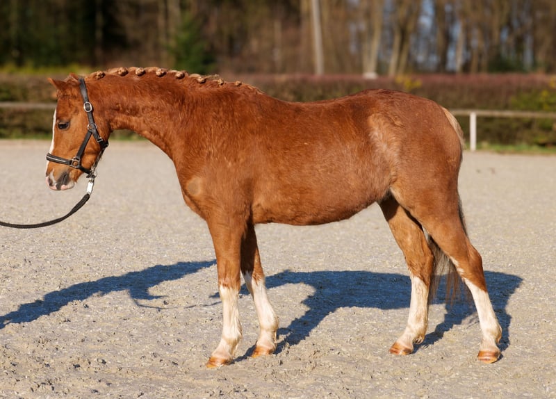 Name: Star Rasse: Welsh Mix Geschlecht: Wallach Geburtsdatum: 08.06.2021 Alter: 5 Stockmaß: 1.28m Farbe: Fuchs Abstammung: ohne Abstammungsnachweis Charakter: kinderlieb, menschenbezogen, verlässlich, geduldig, neugierig, intelligent, mutig Ausbildung/Eignung: geritten, Dressur, Freizeit, Ponyclub, Schulbetrieb Geländeerfahrung: zuverlässig, unerschrocken, nervenstark, alleine und in der Gruppe Gesundheit: entwurmt, geimpft, Barhufer, ekzemfrei, Zähne kontrolliert Haltung: Offenstall Besonderheiten: gute Grundgangarten, schmiede und verladefromm, herdenverträglich Die genannten Eigenschaften beruhen auf unserer persönlichen Einschätzung und stellen keine zugesicherten Merkmale dar. Preis: 3900€ (Bruttopreis) Haben wir ihr Interesse geweckt? Um Ihnen einen besseren Eindruck von Star zu geben, senden wir Ihnen sehr gerne sein Reitvideo zu. Selbstverständlich stehen wir Ihnen für eine ausführliche Beschreibung des Pferdes, persönliche Beratung und zur Beantwortung aller Ihrer Fragen auch telefonisch zur Verfügung. Bitte schreiben Sie uns hierfür jederzeit eine WhatsApp Nachricht, oder rufen unter folgender Telefonnummer an: +49 15119487595 Unsere Telefonzeiten sind täglich von 7:00 - 13:30 sowie ab 20:00Uhr. Wir freuen uns über Ihre Kontaktaufnahme! Eine klinische oder Röntgenologische Ankaufsuntersuchung kann gerne vom Tierarzt Ihrer Wahl durchgeführt werden. Natürlich kann Star sicher und komfortabel in sein neues Zuhause geliefert werden. Wir kümmern uns um alle notwendigen Vorbereitungen und den Transport, damit Ihr neues Pferd stressfrei, gut betreut, versichert und wohlbehalten im neuen Zuhause ankommt. Zurzeit präsentieren wir eine sorgfältig ausgewählte Vielfalt an Verkaufspferden. Bei uns finden Sie garantiert Ihr Traumpferd. Besuchen Sie uns auch gerne auf unserer Homepage unter: www.marvinsroyalhorses.de. Sehr geehrte Kunden, gerne stellen wir Ihnen unsere Pferde vor und führen, putzen, satteln, longieren, Bodenarbeit sowie Probereiten in der Reithalle, auf dem Platz oder im Gelände ist Ihnen möglich, um Ihr neues Familienmitglied näher kennenzulernen. Dieses kostet für ein Pferd 40€, für jedes weitere 30€ und wird beim Kauf wieder erstattet. Unsere Adresse lautet: Grube Ferdinand 50 53577 Neustadt Wied Google Maps: marvinsroyalhorses