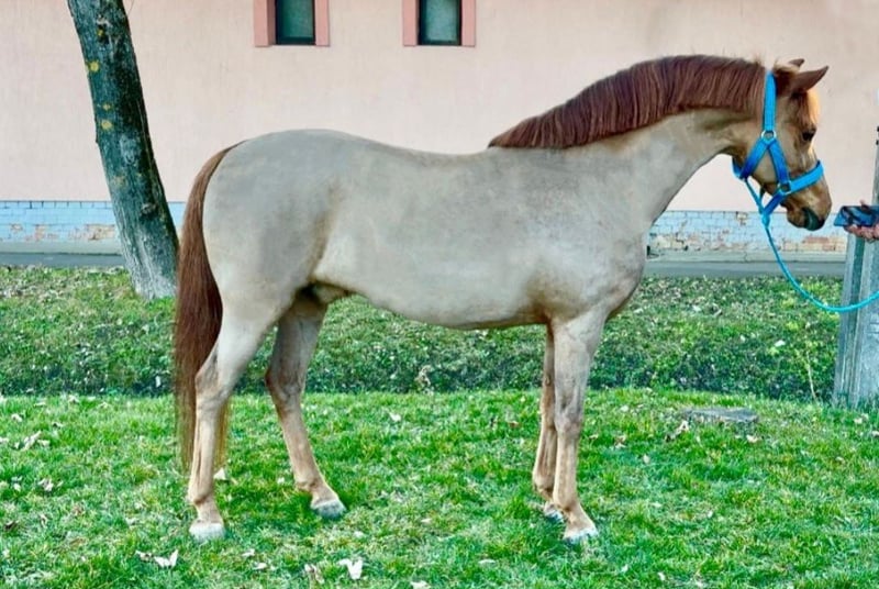 For sale is the lovely Bounty: he is a stunning 6-year-old pony gelding standing at 126 cm. He is extremely gentle and easy to handle, making him suitable for children or teenagers to ride, lead, groom, and care for without any issues. He has a relaxed and calm temperament and is not a hot pony! He has been ridden in all three basic gaits both in the arena and in the field, and has also been driven single and pair with excellent results. Additionally, he jumps small fences. He is healthy, barefoot, has a horse passport, is dewormed, and shows no signs of laminitis or sweet itch. He is familiar with both turnout and stable life and is well socialized. We are also offering his sister, a 5-year-old chestnut mare named "Bella." The two make a great driving pair as well. :-) We are happy to assist with transportation—either we can drive ourselves if the distance isn’t too far, or we can organize a professional transport company. More information, photos, and videos are available upon request via WhatsApp.