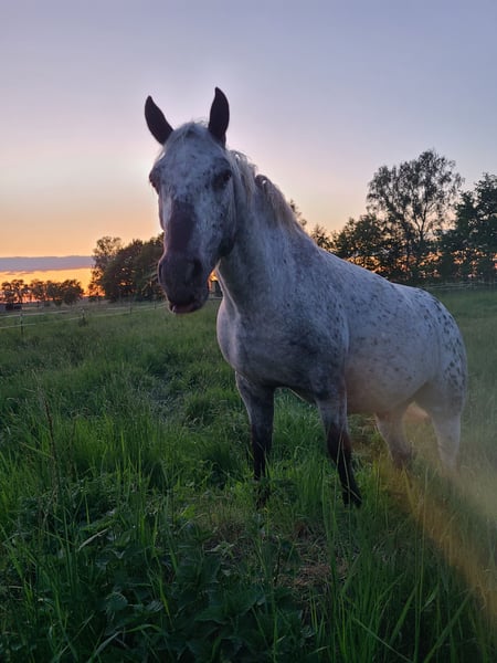 Schweren Herzen verkaufe ich meinen 6 Jährigen Appalosamixwallach. Er ist zwischen 1,30 und 1,40m groß, gemessen hab ich ihn leider nicht. Mit ihm kann man so viel Spaß haben alleine Ausreiten frei arbeit und vieles mehr. Er wird als reines Freizeitpferd verkauft. Er mag keine wechselnden Reiter. Da er noch jung ist haben wir noch nicht so viel gemacht. Da ich leider mit meiner Krankheit nicht mehr so fit bin würde ich ihn gerne in guten Händen wissen. Er ist einfach zu schlau um rumzustehen. Er muss in einer Wallach Herde stehen. Dazu gerne mehr privat. Der Preis ist absolut verhandelbar, da es mir wichtiger ist das er ein gutes zuhauser findet.
