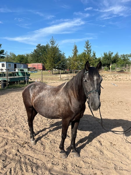 Gelding, 6 years old, 15.5 hh, calm and experienced A handsome gelding whose balanced nature immediately inspires trust. He is easy to handle, personable, and enjoys working with people, always remaining respectful and attentive. Whether in the riding arena or out on the trails, he stays calm and reliable. He also keeps his composure in traffic, providing his rider with confidence and security. In daily handling, he is straightforward: grooming, farrier visits, and tacking are no problem for him. He gets along well with other horses, easily integrating into a herd, and is neither dominant nor insecure. He also behaves cooperatively when loading and in new environments. He is in excellent health: he has a valid horse passport, receives regular vaccinations and deworming treatments. A true partner for everyday riding – safe, calm, and lovable, someone you can always rely on. +49 176 4017 7894