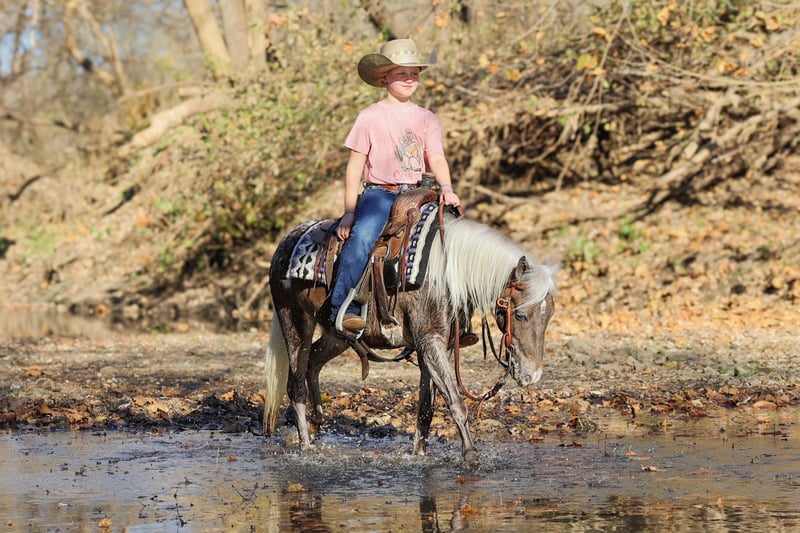 🎁 𝐈𝐍 𝐓𝐈𝐌𝐄 𝐅𝐎𝐑 𝑪𝒉𝒓𝒊𝒔𝒕𝒎𝒂𝒔 🎁 Happening now thru TUESDAY | DECEMBER 9th - Available EXCLUSIVELY on Ponybid's website! For more details and to register visit: www.Ponybid.com CONSIGNOR CONTACT: Hostetler Family Horses 660-287-4280 LOCATION: Sedalia MO BREED: Pony REGISTERED: No COLOR: (Appaloosa)Chocolate Palomino With Blanket HEIGHT: 42" AGE: 6 GENDER: Gelding Teddy is a very gentle 42"pony that is very well broke with a nice neck rein and easy stop. Teddy is as gentle and kind as you want one to be and absolutely loves attention! He rides really good in the arena or outside, wherever you want to ride him. He crosses water with ease and is awesome on the trails. He is patterned on the barrels and has even run the barrel pattern bridleless. He rides just as good bareback as he does with a saddle. If you watch his video, you will see him running the barrel pattern bareback, and bridleless with just a rope around his neck. He is also great in the cart and is easy for even the little kids learning how to drive. He has no problem going slow for the little kids or stepping it up a bit for the older more experienced kids. Unfortunately, Teddy had a recent eye injury and there is still a spot in his eye, but he has full vision, and it doesn't bother him. The injury is only a week old so there would be a possible that would still go away but he will sell assuming it will still be there. We Really enjoy Teddy and think you will too So for more info or to come check him out in person call/text Russ @ 660-287-4280