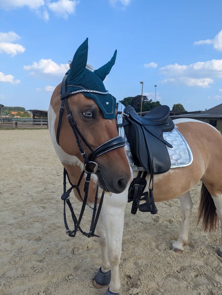 Ich verkaufe meinen hübschen und besonderen Endmaßpony - Wallach. Kalino braucht vom Boden aus eine durchsetzungsfähige Person, da er sonst immer Mal wieder testet (wenn man nicht selbstsicher ist). Ist sehr feinfühlig und versteht gut Körpersprache. In der großen Wallachherde kann er immer Mal wieder hengstiges / dominantes Verhalten zeigen. Kleinere Wallachherden gefallen ihm besser. Ranghoch. Beim reiten ist er sehr lieb und verzeiht Fehler. Er ist auch für nicht so starke Reiter geeignet und achtet sehr auf seinen Reiter (Ohr oft bei einem, bei Unsicherheit pariert er durch). Sehr schöne , weiche Gänge und testet beim reiten nicht. Selten schreckhaft. Im Umgang mit Kindern auch sehr lieb, einfühlsam und sehr geduldig. Natürlich sollte ein Erwachsener in der Nähe sein. Verladefromm, lieb beim Schmied / Hufpflege, Barhuf, entspannt beim Putzen, hat kein Problem mit Wasser, eher ein ruhiger Typ. Große AKU von 2024 vorhanden (inklusive Röntgenbilder von Beinen und Rücken)- absolut unauffällig, top fit! Bei weiteren Fragen gerne melden :)