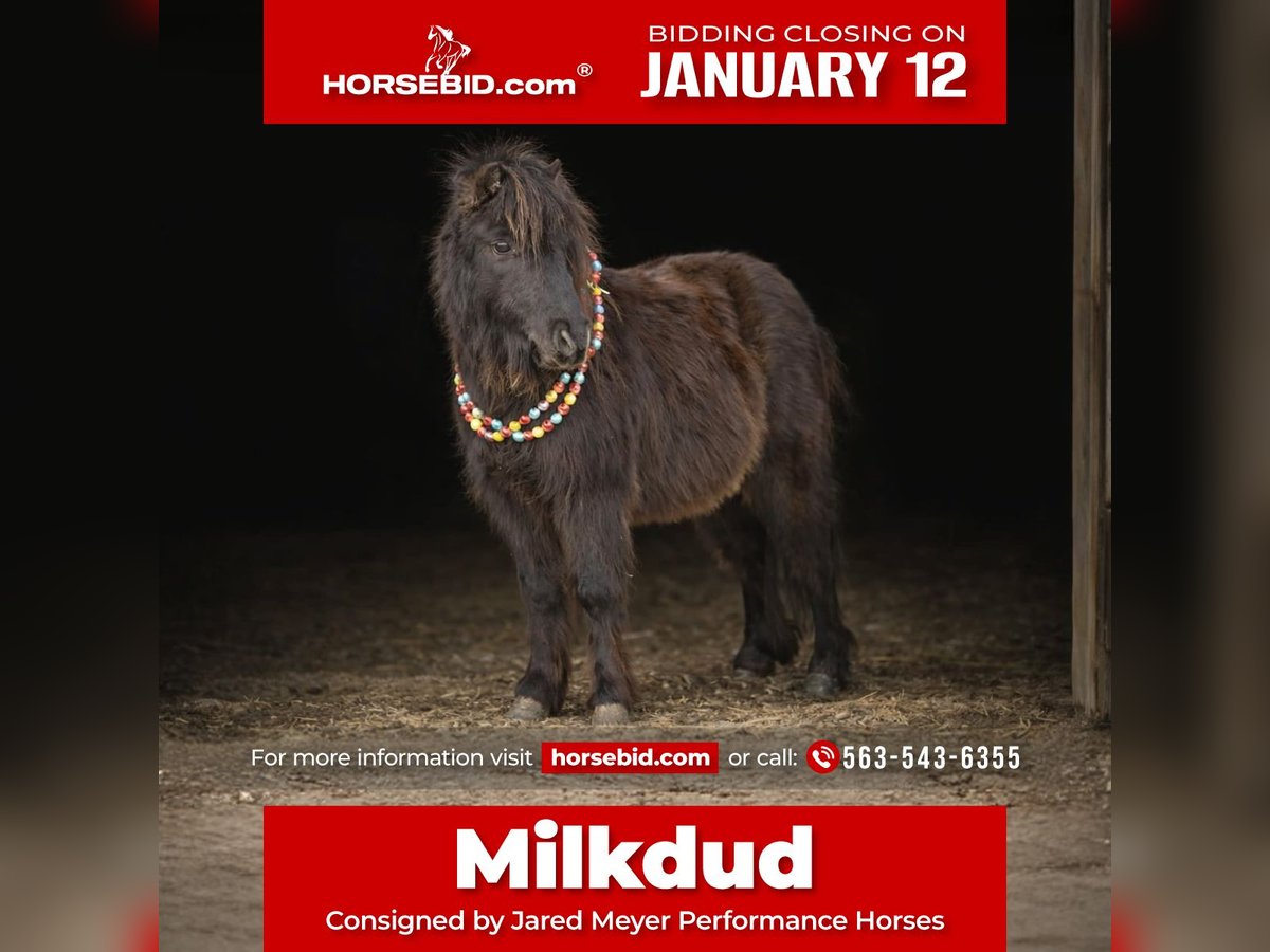 ♦️𝐍𝐄𝐖 𝐘𝐄𝐀𝐑'𝐒 𝑬𝒙𝒕𝒓𝒂𝒗𝒂𝒈𝒂𝒏𝒛𝒂♦️ Happening now thru MONDAY | JANUARY 12th - Available EXCLUSIVELY on HorseBid's website! For more details and to register visit: www.Horsebid.com CONSIGNOR CONTACT: Jared Meyer Performance Horses 563-543-6355 LOCATION: Bernard, IA BREED: Pony REGISTERED: No REGISTERED NAME: Milkdud COLOR: Black HEIGHT: 38 inches AGE: 7 GENDER: Gelding Milkdud is the kind of pony every parent hopes to find and every kid remembers forever. This 2019 black gelding stands right at thirty-eight inches and has been shaped the best way possible — by kids. He’s been ridden, loved, and outgrown by capable young riders, giving him the kind of solid, honest foundation that can’t be rushed or manufactured. Quiet, steady, and incredibly dependable, Milkdud is an extremely safe and gentle trail partner who takes care of his rider every step of the way. He rides out alone without hesitation, never makes a peep, and goes exactly where he’s asked. Sure-footed and confident, he’s been on trail rides, around cattle, and exposed to real-world situations that matter for a family pony. Milkdud is sturdy, good-minded, and well-suited for fit beginners or first-time horse owners looking for a pony their kids can truly enjoy. If you’re searching for a pony that builds confidence, keeps parents at ease, and creates lasting memories — Milkdud checks every box. 100% Sound, Safe and Gentle Questions or to schedule a time to see this horse, contact Jared Meyer at 563-543-6355.