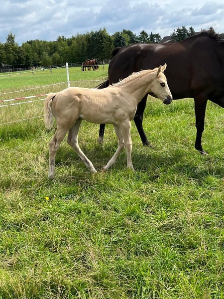 Zum Verkauf steht ein außergewöhnliches Palomino-Stutfohlen mit seltener reiner Vollblutabstammung eingetragen beim Oldenburger Sringpferdezuchtverband. Ein seltener Farbschatz mit sportlicher Perspektive . Sie vereint die Eleganz und Härte des Vollblutes mit einem modernen, sportlichen Exterieur-dazu eine goldene Farbgebung, die sie zu einem echten Blickfang macht. Menschenbezogen,kennt das Fohlen-ABC: Halfter, Schmied, hängerfahren. Ruht in sich selbst. Nervenstark und unerschrocken. sehr gut bemuskelt . Snowy's Cristobal xx ist efolgreich in Spring- und Geländeprüfungen eingesetzt und besticht durch seinen guten Charakter. Lou's Lillyfee ist leistungsgeprüft beim OS.( Fohlenprämie) Sie hat schon einen sehr typvollen und nervenstarken 3-jährigen Bukskinsohn von Quaside. Perspektive: Ideal für Zucht, Vielseitigkeit oder Springsport-perfekt für Kenner, die das Außergewöhnliche lieben. Auch für anpsruchsvolle Hobbyreiter geeignet. Kann Mitte Dezember abgesetzt werden.(geb. 28.6.) Nur in kompetente Hände abzugeben