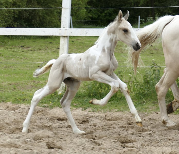 This wonderful foal is still looking for a new home! Iago A – An exceptionally striking foal with a buckskin tobiano coat! This beautiful colt is sired by Insider out of Mistral x Almhirt Tynsky. His pedigree makes him particularly interesting for eventing and show jumping!