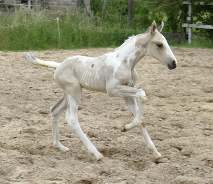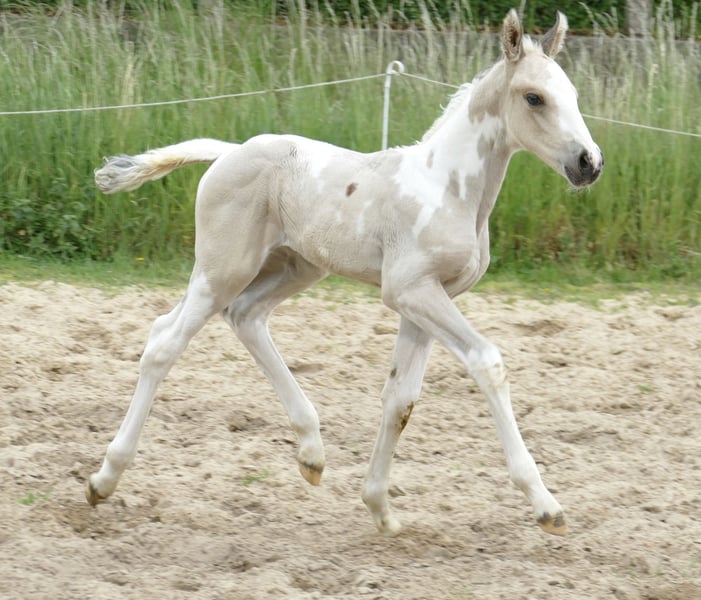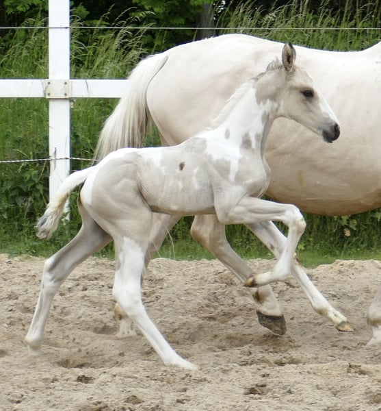 Ten wspaniały źrebak szuka nowego domu! Iago A - wyjątkowy młody koń w kolorze buckskintobiano! Ten piękny ogierek pochodzi od Insider x Mistral x Almhirt Tynsky. Jest interesujący pod względem rodowodu zarówno do wszechstronnej jazdy, jak i skoków!