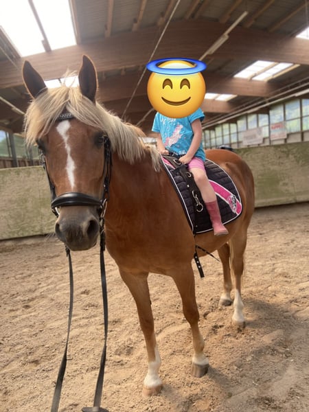 Hallo, Schweren Herzens suche ich aus zeitlichen Gründen ein neues Zuhause für meine Stute. Bondi ist 148 cm groß und wird dieses Jahr 12 Jahre alt. Sie wurde überwiegend freizeitmäßig in der Dressur geritten. In der Halle arbeitet sie mit, kann aber auch mal ihre eigene Meinung haben und etwas stur sein. Dabei bleibt sie jedoch immer fair. Hat sie Vertrauen zu ihrem Menschen aufgebaut, lässt sie sich deutlich leichter motivieren und arbeitet dann auch gerne mit. Besonders liebt sie Ausritte und genießt die Zeit im Gelände sehr. Dort ist sie eine schöne Begleiterin für entspannte Runden. In neuen Situationen kann sie auch mal etwas unsicher sein, bleibt dabei aber in der Regel gut kontrollierbar und rennt nicht einfach los. Auch Bodenarbeit kennt sie und macht diese gut mit, wenn man konsequent bleibt. Springen wurde nicht weiter gefördert, da sie dabei schnell etwas hektisch und kopflos wird. Daher sehe ich sie eher als Freizeitpferd für Dressurarbeit und vor allem schöne Ausritte. Stangenarbeit macht sie allerdings super mit, auch mit Kindern. Zeigt sich da motiviert (bis Cavaletti Höhe auch gefördert). Bondi ist insgesamt eine liebe und ehrliche Stute, die gerne mit ihrem Menschen zusammenarbeitet. Natürlich hat sie – typisch Stute – auch ihren eigenen Kopf, bleibt dabei aber immer fair und gut händelbar. Sie wurde auch schon von Kindern geritten, ist jedoch kein reines Anfängerpferd. Ich kann sie mir aber sehr gut als Familienpferd für Mutter/Vater und Kind vorstellen, wenn eine erwachsene Person mit etwas Erfahrung dabei ist. Platz vor Preis – mir ist wichtig, dass sie in ein passendes Zuhause kommt. Zubehör würde Bondi komplett mitbringen. Standort: Wuppertal-Ronsdorf Bei ernsthaftem Interesse oder Fragen gerne melden.
