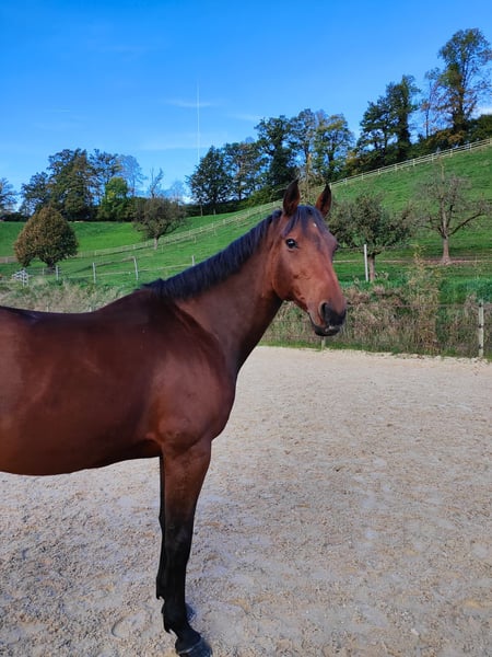 Imira weisst eine super Abstammung auf und hat top Charakter! Sie ist klassiert bis 115 cm, aufgrund ihrer Gesundheit konnte man nicht höher starten, obwohl sie das Vermögen hätte. Im Springsport hatte Imira immer eine Top-Einstellung, sie ist immer gesprungen und hat mitgekämpft zudem wurde sie im Parcours nicht heiss und somit perfekt händelbar und war so eine super Lehrmeisterin! Wichtig: ihr gesundheitliches Problem ist nicht vererbbar, es ist durch Fehler von Menschen entstanden. Zudem hatte sie noch nie Huf-Probleme. Dadurch ist Imira nicht mehr reitbar oder nur Schritt und Trab / Bodenarbeit macht sie sehr gerne und kann sie auch gut (Parelli). Im Umgang ist sie sehr unkompliziert und absolut brav. Absolut Verlafde- und Schmiedefromm. Dieses Jahr hatte sie ihr erstes Fohlen, dies meistert sie wie ein Profi! Nun suche ich einen Platz an dem sie weiterhin eine Top-Mama sein darf oder als Beistellpferd dient!