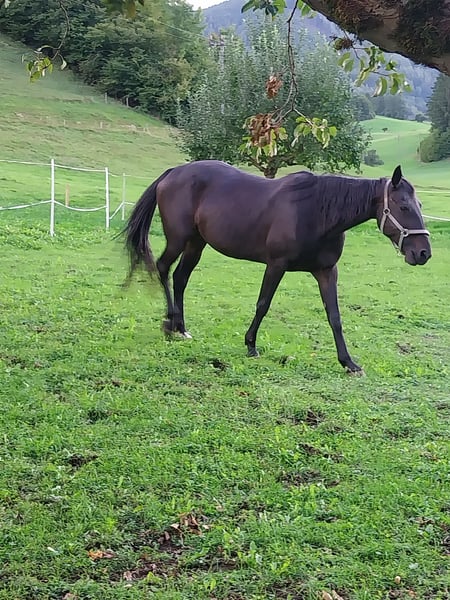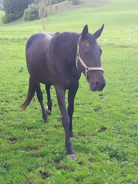**Sales Advertisement: Versatile Warmblood Mare for Sale** We are offering a rideable companion horse for sale. She is easy to handle, good with the farrier, and veterinarian, and is completely healthy. She can be viewed at any time. **Features:** - **Breed:** Warmblood - **Gender:** Mare - **Year of Birth:** 2015 - **Color:** Black - **Height:** 157 cm