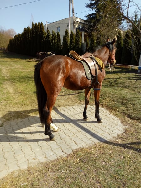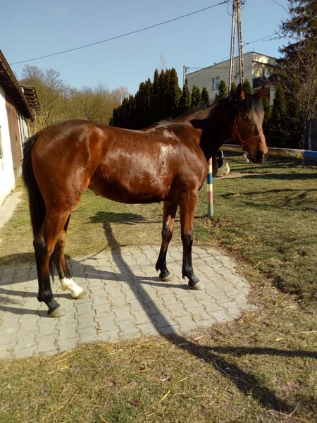 Posiadam do sprzedania 2 letnią klacz gniadą o wzrośćie 155 cm .Matka jej to folblutka ,ojciec ,koń tarantowaty hodowli sk Michałów ,im Birkut.Klaczka przyzwyczajona do wędzidła,jest lonżowana,ma zakładane siodło.Bardzo dobrze podaje nogi.