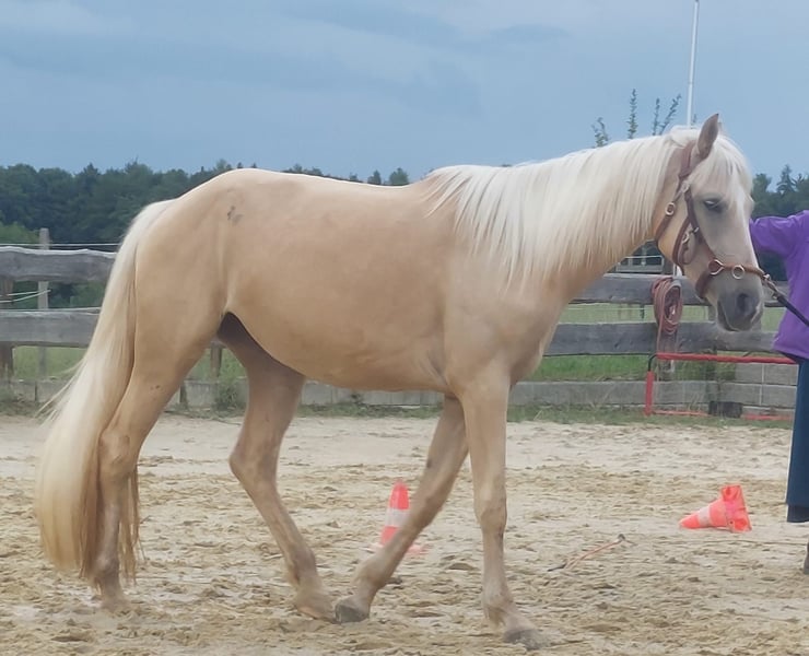Verkaufe wunderschöne, fleissige Palomino-Warmblut-Stute Zum Verkauf steht eine elegante Palomino-Stute, geboren im Jahr 2022. Sie besticht durch ihr menschenbezogenes und freundliches Wesen. Mit einem Stockmaß von 165 cm bietet sie die perfekte Größe für verschiedenste Disziplinen. Diese junge Stute ist ein vielversprechendes Pferd für Reiter, die Wert auf Qualität und Charakter legen. Sie ist gesund, gut sozialisiert, schmiedefromm und macht keine Probleme beim Verladen. Sie steht derzeit im professionellen Westernberitt und hat sich in dieser Zeit hervorragend entwickelt. Mit ihrem lieben und motivierten Wesen möchte sie ihrem Reiter immer gefallen. Sie ist fleissig und geht zur Zeit alleine ins Gelände, arbeitet motiviert an der Longe, an der Doppellonge und bei der Bodenarbeit mit. Ein echter Allrounder, der auch an den Rollstuhl gewohnt ist – wir können sie auch gut in therapeutische Richtung vorstellen. Bei Interesse stehe ich gerne für weitere Informationen und eine Besichtigung zur Verfügung. Kontaktieren Sie mich, um mehr über dieses besondere Pferd zu erfahren! Sie wird nur aus gesundheitlichen Gründe verkauft. Nicht an Händler.