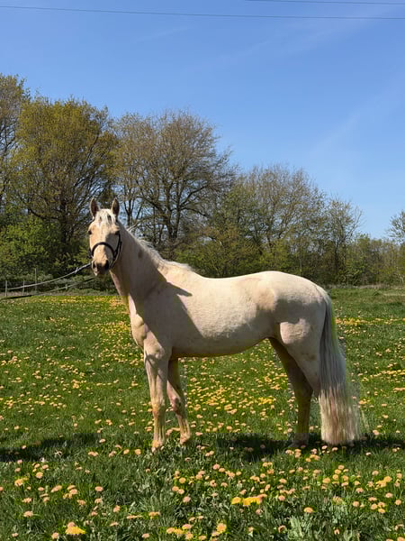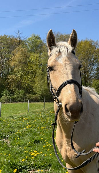 Zum Verkauf steht unsere bezaubernde Stute Primabella, geboren am 08. Mai 2022. Mit ihrem edlen Palomino-Fell, einem aktuellen Stockmaß von ca. 1,60 – 1,62 m und ihrer freundlichen, menschenbezogenen Art ist sie ein echter Hingucker. Primabella stammt väterlicherseits von dem berühmten Hengst Krem ab und überzeugt nicht nur durch ihre Abstammung, sondern auch durch ihre sehr guten Grundgangarten und ihr angenehmes Wesen. Sie ist bereits gut anlongiert und kennt das Arbeiten mit Sattel, zeigt sich dabei aufmerksam, lernwillig und brav. Durch ihren liebevollen Charakter kommt sie bestens mit Menschen sowie Tieren aller Art zurecht und ist im täglichen Umgang unkompliziert und verschmust. Primabella eignet sich hervorragend als zukünftiges Freizeit-, Dressur- oder Familienpferd und bringt beste Voraussetzungen für eine weitere Förderung mit. Bei ernsthaftem Interesse freuen wir uns über eine Nachricht. Ein Kennenlernen ist nach Absprache jederzeit möglich.