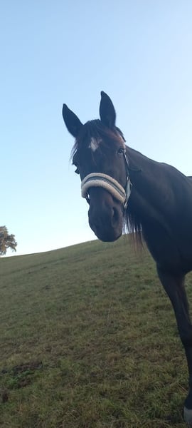 Name: Romy Alter: 5 Jahre Stockmaß: ca. 155-160cm Geschlecht: Stute Romy ist eine wunderschöne, sensible Traber-Stute mit viel Herz und Ausstrahlung. Sie braucht etwas Zeit, um sich auf neue Situationen und Menschen einzulassen, doch wenn man ihr Sicherheit gibt, zeigt sie sich sehr fein, aufmerksam und kooperativ. Im Umgang ist sie brav, lässt sich putzen, führen und verladen. Unter dem Sattel bringt sie Temperament und Lernfreude mit, benötigt jedoch eine erfahrene, konsequente Hand, die ihr Sicherheit vermittelt. Romy ist kein Anfängerpferd, aber für jemanden, der Freude an der Ausbildung junger Pferde hat, wird sie ein toller Partner. Aktueller Trainingsstand Durch meine Verletzung musste ich leider eine längere Zwangspause einlegen, wodurch Romy etwas Muskulatur verloren hat. Sie befindet sich daher aktuell nicht auf ihrem vollen Potential. Unter dem Sattel kennt sie Schritt, Trab und Galopp. Für einen Traber beherrscht sie bereits einen relativ ordentlichen Galopp (siehe Video, da ist meine jüngere Schwester sie übrigens zum allerersten Mal geritten🙈), auch wenn es ihr aufgrund der fehlenden Muskulatur und Balance noch passieren kann, in den „Tralopp“ zurückzufallen. Mit regelmäßigem Training verbessert sie sich jedoch stetig und gewinnt mehr Kraft und Ausdauer. Das bringt Romy mit : Jung, gesund und lernwillig Sensibel und menschenbezogen – baut bei Vertrauen eine enge Bindung auf Verladefromm Beherrscht die Grundgangarten, Galopp entwickelt sich kontinuierlich Barhuf, schmiedefromm, regelmäßig geimpft & entwurmt, Zähne regelmäßig gemacht Das suchen ich für Romy: Einen erfahrenen, liebevollen Freitzeit Platz mit viel Geduld und Freude an der Förderung junger Pferde. Ideal wäre ein Reiter, der Spaß an Bodenarbeit, Dressur-Basisarbeit und gemeinsamen Ausritten hat und Romy die nötige Zeit gibt, ihr volles Potential zu entfalten. Probereiten kann gerne vereinbart werden, dafür nehme ich eine Gebühr von 30 € die beim Kauf rückerstattet wird um Reittourismus fernzuhalten 📍 Standort: Bezirk Perg 💶 Preisvorstellung: VB 6.500 € 📞 Kontakt: +43 660 8254954