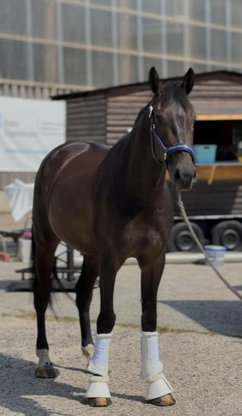 Zoom merrie – 4 jaar – vriendelijk in de omgang & met een geweldig karakter Te koop aangeboden: een 4-jarige Zoom-merrie die overtuigt met drie mooie basisgangen en een lief, gemakkelijk temperament. Ze is al ingeschreven in dressuurpaarden A en is altijd voorzichtig en correct opgeleid. In de dagelijkse omgang toont ze zich zeer braaf, vriendelijk en makkelijk in de omgang – een echt sympathiek paard dat graag wil gefallen. Onder het zadel heeft ze echter een ervaren, rustige hand nodig, omdat ze nog jong is en gevoelig reageert op de ruiter. Helaas heeft ze een diagnose van kissing spines en heeft ze daarom de juiste begeleiding nodig. Met aangepast trainen en een passende verzorging kan ze echter nog steeds op wedstrijden worden uitgebracht. Ze wordt afgestaan als recreatiepaard met perspectief, aan ervaren en liefdevolle handen die haar de juiste verzorging, beweging en tijd kunnen bieden. Beginners of onzekere ruiters komen niet in aanmerking. Een geweldig paard voor iemand die op zoek is naar een eerlijk recreatiepaard dat met vertrouwen en geduld veel teruggeeft. Daarom wordt ze ver onder de marktwaarde aangeboden! Huidige röntgenfoto’s van hals en rug zijn aanwezig. Bij interesse graag een privébericht of contact via telefoon. Prijs op aanvraag 0170/4692410